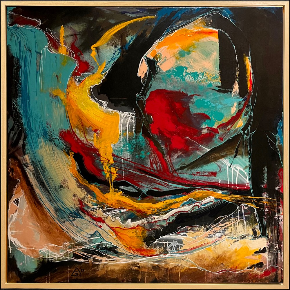 Abstract painting Done with Acrylic paint, spray can and ink and finished with Cobra Oil paint.